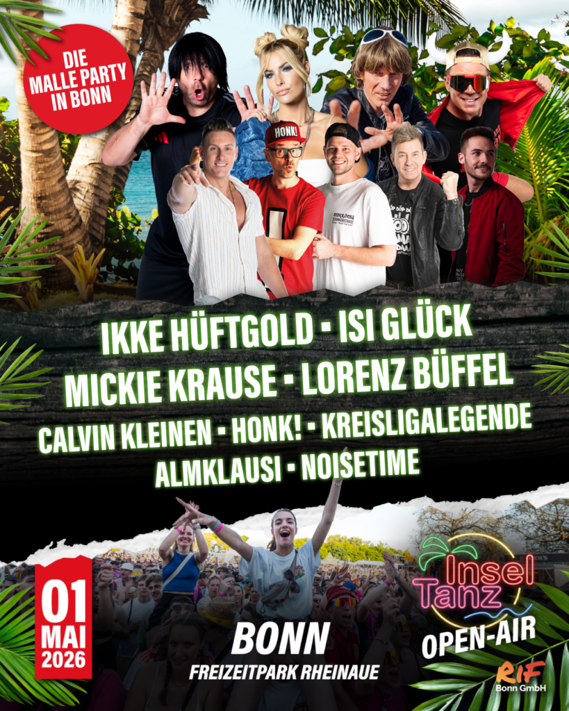 Am 01. Mai 2026 verwandelt sich die Rheinaue Bonn erneut in die größte Mallorca-Party der Region. Beim Inseltanz Open-Air treffen Sommerfeeling, Partyhits und tausende feiernde Gäste aufeinander – mitten im Herzen von Bonn.